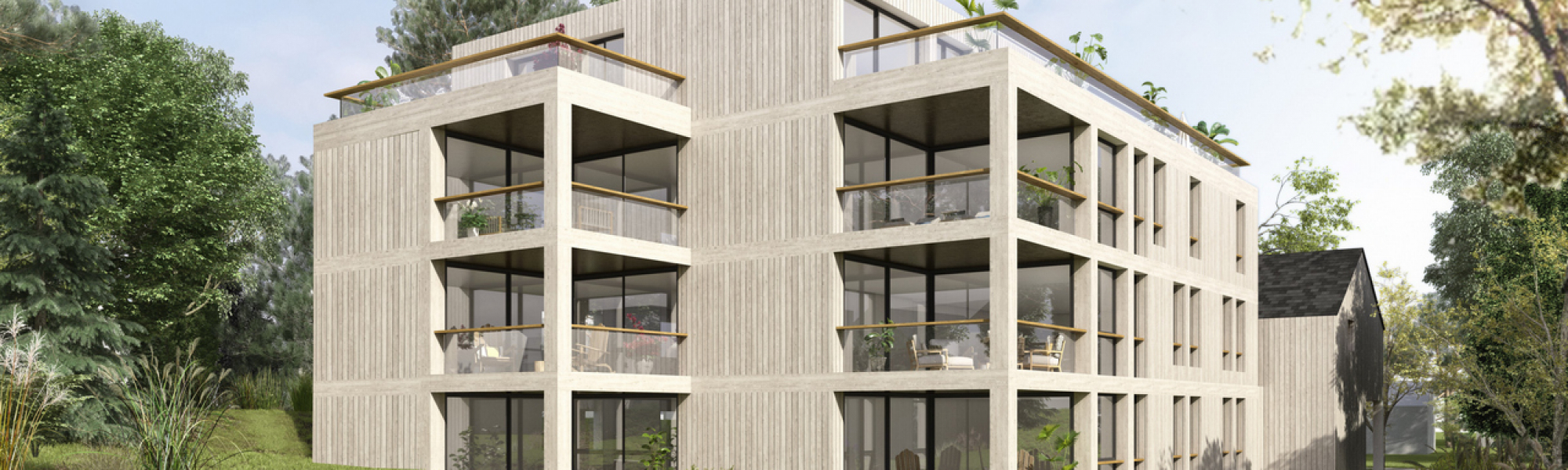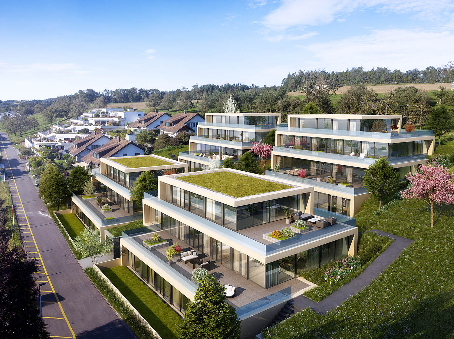 Realisiert wurden 4 Einheiten mit insgesamt 14 Häusern. Jedes Terrassen Haus hat seine eigene Parzelle und ist somit komplett autonom.